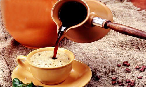 這種咖啡流行于中東、北非和中歐地區。跟其他咖啡不一樣,土耳其咖啡煮制的方法很特別。一般用一個葫蘆狀的鐵質小咖啡壺,加水后放到爐上煮,之后放入咖啡粉輕輕攪拌而成。通常有經驗的人會把上面浮起來的一層沫撇出來分到不同的杯中,增加濃香的口感。